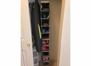 Yikes, Spring is kicking my butt with lots of projects and I have been slacking on posting. I don't know about you, but shoe organization is always a struggle. Spring/Summer becomes even worse when there are flip flops, sports sandals, baseball cleats, tennis shoes and more! I had been in a trap trying to figure out how to calm the clutter. I finally decided I was over thinking the baskets and cute ideas. At the end of the day that is why I have an entry closet and these hanging shoe storage options are great and cheap! Sometimes you just have to remember that simple will do the job too!